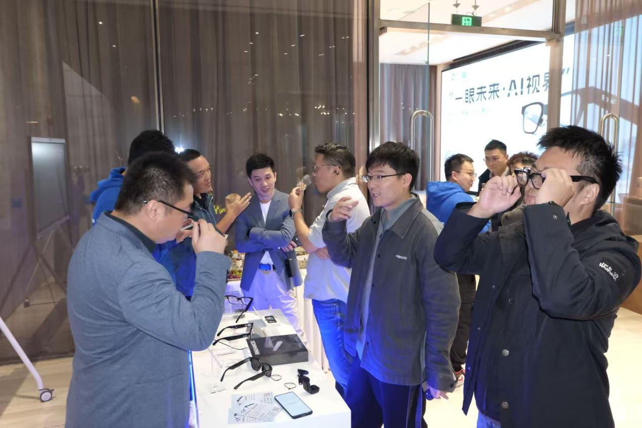 茶歇期间,Rokid AI 眼镜体验区人气爆棚,与会嘉宾踊跃体验AI眼镜,技术团队与产品顾问一对一答疑,将产品优势转化为直观体验,进一步夯实合作信心。