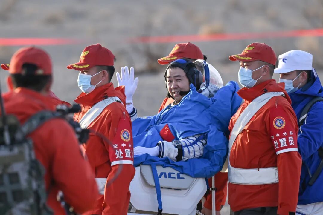 11月14日,载着神舟二十号航天员乘组的神舟二十一号载人飞船返回舱在东风着陆场成功着陆。这是航天员陈冬安全顺利出舱。新华社记者 李志鹏 摄