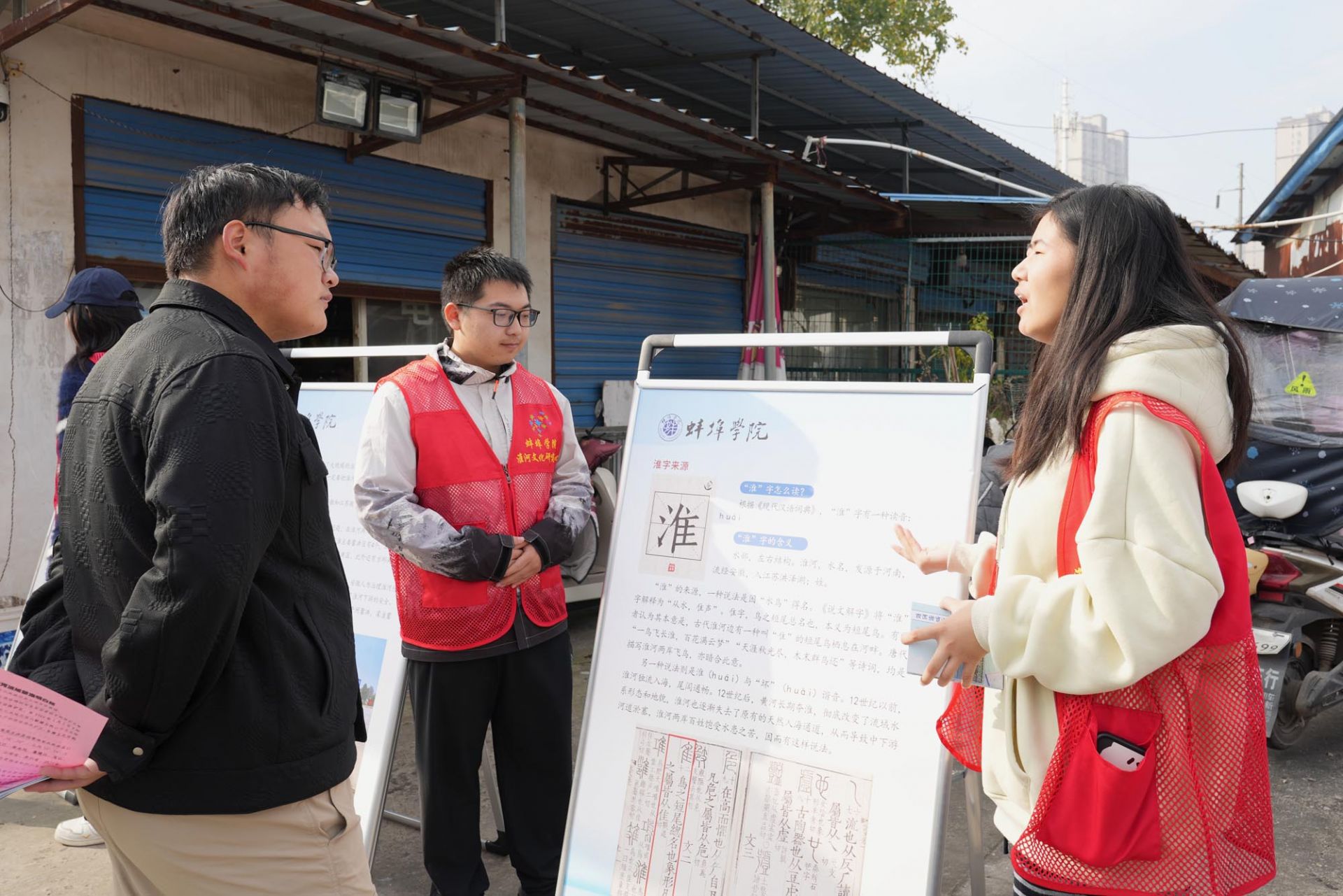 政校联动守护淮河生态 2025年11月15日,“科普安徽”科技志愿服务系列活动在蚌埠市顺利开展。蚌埠学院淮河文化研究中心、蚌埠市自然资源和规划局(市林业局)、市场监督管理局监察支队、蚌埠市野生动植物保护协会等单位,共同走进龙子湖枢纽工程,开启了一场融合生态保护与文化传承的科普实践,志愿者还前往龙湖宠物花鸟大市场,面向市民开展了保护鸟类与淮河文化的主题宣传,提升了公众的生态保护意识。 洪何苗 朱艺书 林诺妍 摄影报道