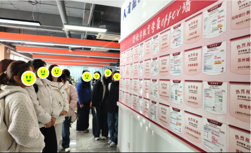 一幅幅数据展板与实物资料吸引学子驻足:墙上悬挂的“8.38万余名累计培育学员”“2024届学员收获1.19万份央国企offer”“36%学员入职世界500强央企核心岗位”等核心数据,彰显服务实力;展柜中陈列的《央国企求职指南》(已更新至第5版,累计发行量超5万册)、分学科笔试真题集(覆盖工程技术、金融管理、医药卫生等12个大类54个二级学科)、学员手写感谢信与录用通知书复印件(含国家电网、中国建筑、中国中药控股等知名企业),让学子们对服务效果有了更具象的认知。