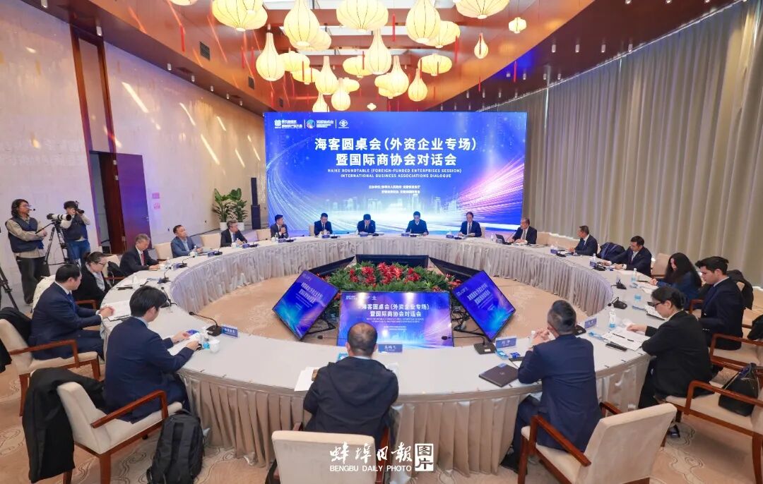 21日下午,海客圆桌会(外资企业专场)暨国际商协会对话活动在中国(蚌埠)古民居博览园举行。