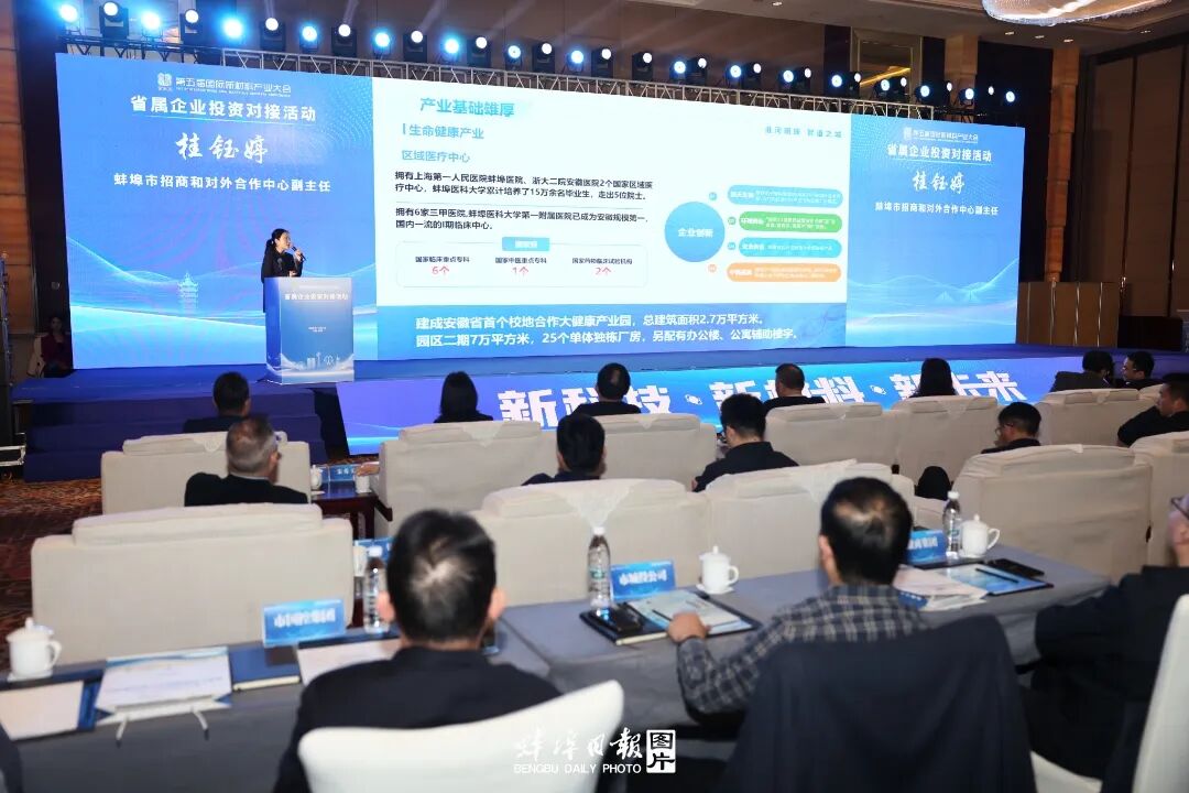 省属企业投资皖北产业对接会上,我市招商部门向嘉宾介绍市情。