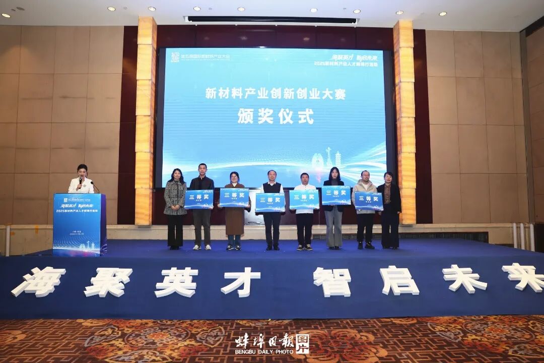 21日下午,新材料产业创新创业大赛获奖企业上台领奖。