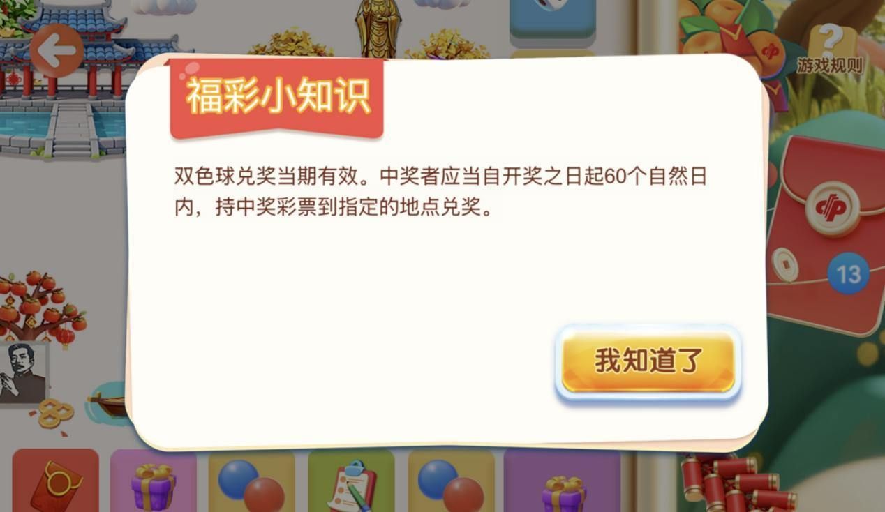 不少彩民在体验中反映,游戏里的福彩知识问答“有点难”。其实,答案就藏在页面中的“福彩小知识”里——只要认真浏览,就能轻松找到线索。答对题目即可获得额外掷骰子机会,增加抽奖几率。
