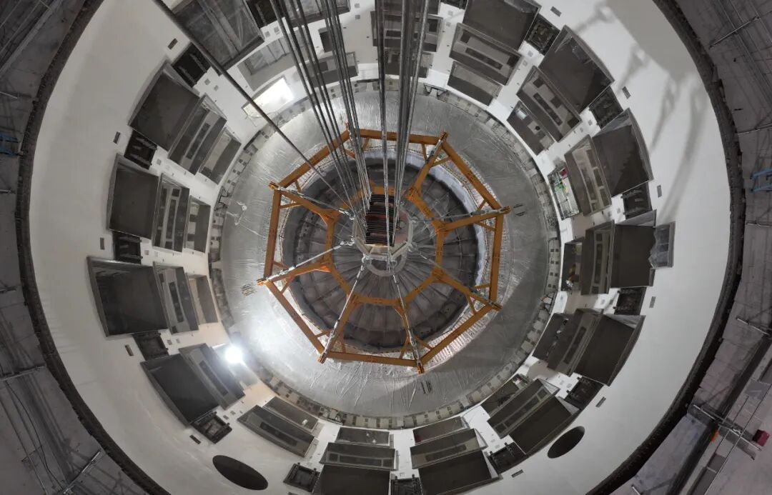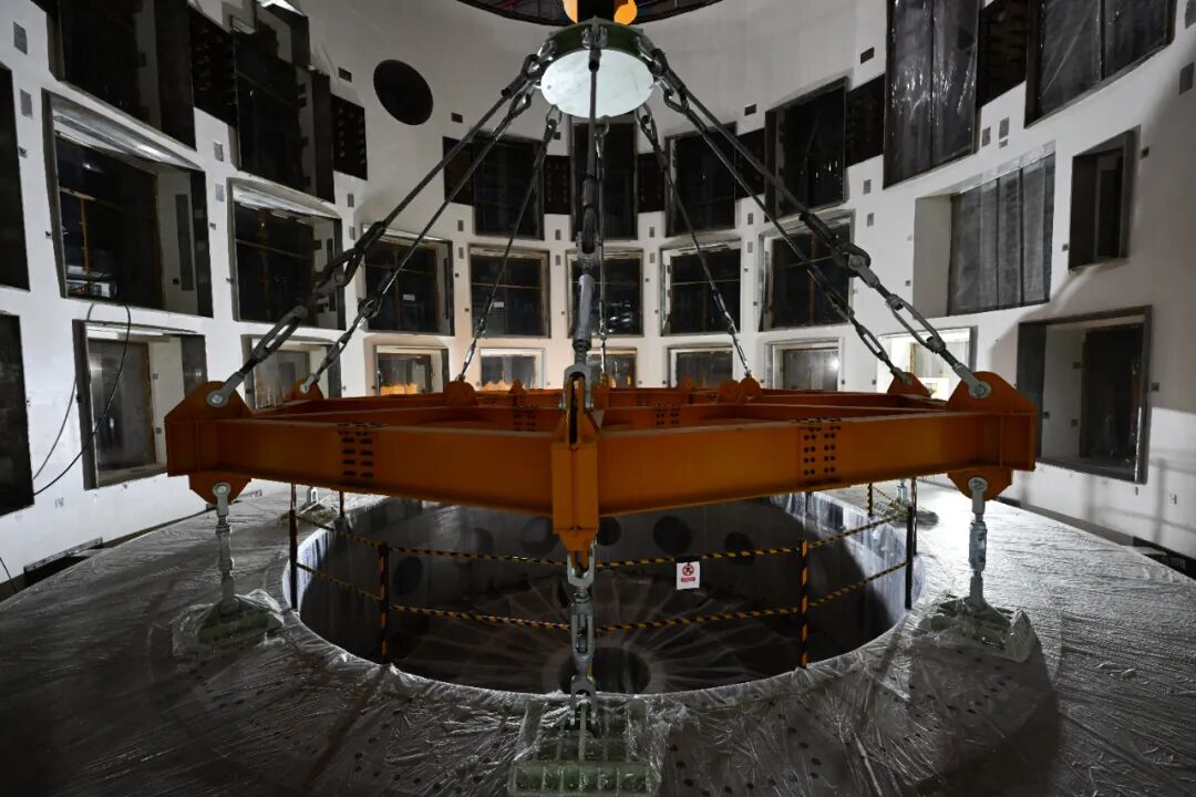 这是10月1日在紧凑型聚变能实验装置(BEST)建设现场拍摄的成功落位安装的杜瓦底座。新华社记者 周牧 摄
