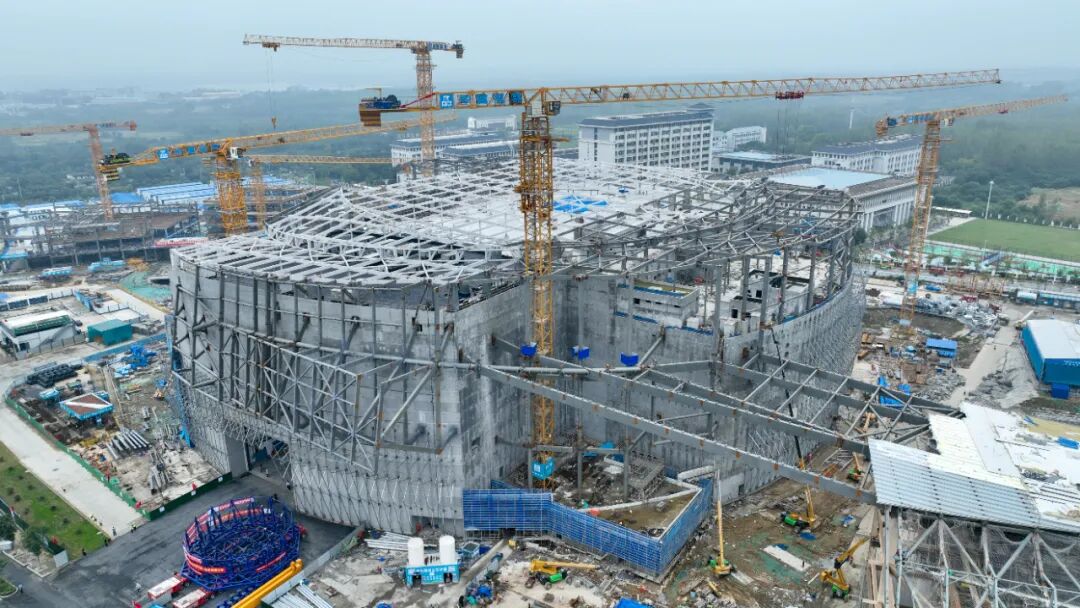 这是10月1日拍摄的紧凑型聚变能实验装置(BEST)建设现场(无人机照片)。新华社记者 周牧 摄