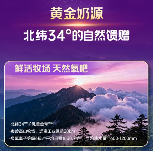 美力源所有奶源均来自北纬34°秦岭高山牧场,这里被誉为 “中国羊乳黄金奶源带”。秦岭地区水草丰美、空气清新,为奶山羊提供了得天独厚的自然生长环境。美力源乳业在“天然氧吧”拥有专属自控牧场,活力莎能奶山羊采用高山放养模式,日行30000步,食秦岭百草,饮山涧泉水。