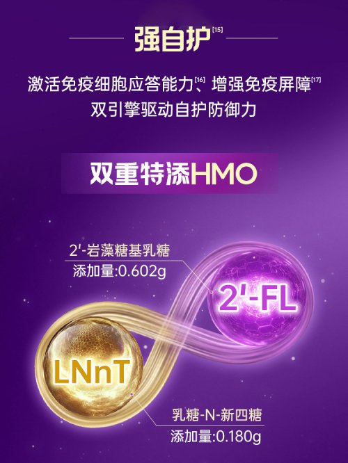 美力源·爱赋携手荷兰皇家帝斯曼,将两种珍贵的HMO——2'-FL与LNnT融入配方,它们不仅是肠道微生态健康环境建立的助推器,更是宝宝构筑自身防御屏障、促进认知发育的天然基石。