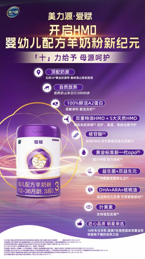 随着消费者对健康食品需求的不断提升,美力源·爱赋婴幼儿配方羊奶粉的推出,不仅为市场带来更多优质选择,更彰显中国乳企在配方研发与品质管控领域的重大突破。此次新品以HMO配方为核心突破,推动婴幼儿配方奶粉进入母乳亲和新阶段,标志着中国婴幼儿配方奶粉正式迈入科技赋能的新阶段,为行业高质量发展注入全新动能。