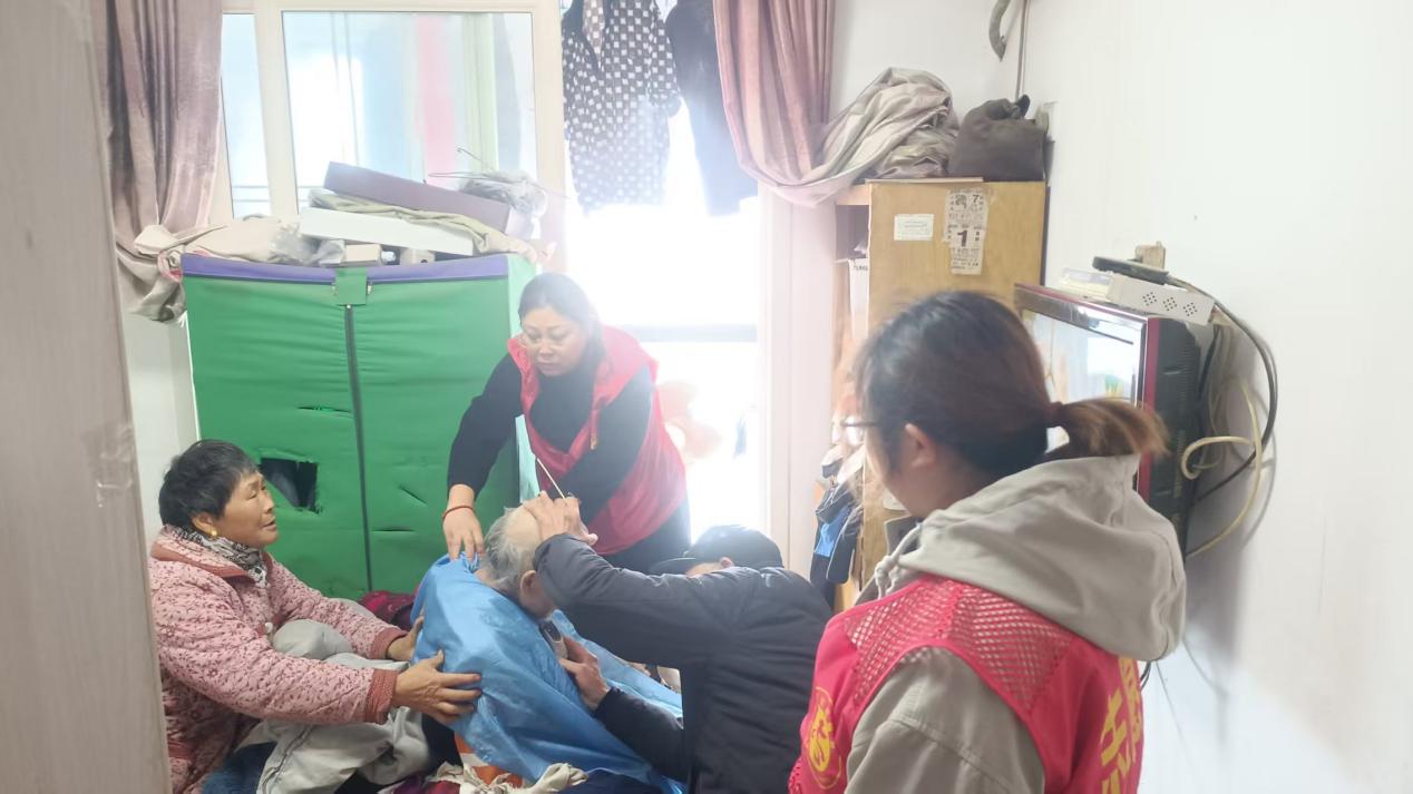 针对卧病在床、出行不便的特殊老人,社区志愿者主动对接专业理发志愿者吴师傅,提前与家属沟通需求、敲定上门时间。理发时,吴师傅结合老人身体状况耐心修剪,志愿者们在旁贴心陪伴、唠家常缓解紧张情绪。老人们理完发精神焕发,家属由衷称赞:“志愿者考虑得太周到,这服务比家人还贴心!”