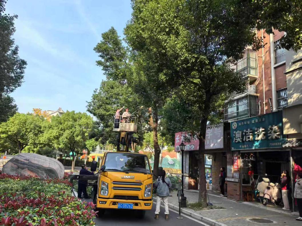 近日,万荣社区聚焦居民身边的安全隐患,联合园水晶城物业开展“树木修剪除隐患”微服务行动。在水晶城小区的西门及小区内,园林工人身着专业作业装备,借助高空作业车,对那些枝叶过于繁茂、存在安全隐患的树木进行细致修剪。