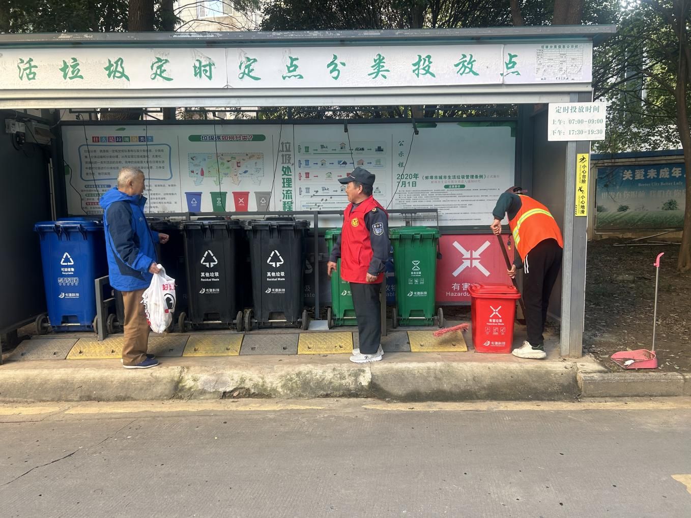 近日,南山社区开展“垃圾分类指导进楼栋”专项行动,组织志愿者、网格员组成指导队,在辖区各小区垃圾分类投放点开展现场指导服务。指导过程中,工作人员对前来投放垃圾的居民逐一讲解分类标准,重点示范厨余垃圾与其他垃圾的区分方法,手把手指导老年居民正确使用分类垃圾桶。针对部分居民分类不规范的问题,志愿者耐心拆解误区,发放垃圾分类宣传单100余份。同时,社区还通过微信群推送分类知识、在单元门口张贴海报等方式,营造“人人参与分类”的浓厚氛围。