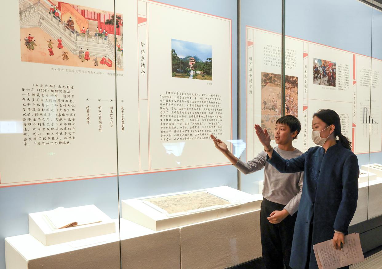 目前,“亘古巨制 煌煌文脉——中华优秀传统文化典籍展”“珠还合浦 历劫重光——《永乐大典》的回归和再造”“千秋文脉万古流——文澜阁《四库全书》整理出版工程特展”等多个展览在国家典籍博物馆展出,吸引了众多参观者前来观展。