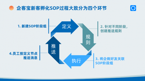 企客宝企微版SOP功能通过四个核心环节,构建了完整的营销自动化框架。