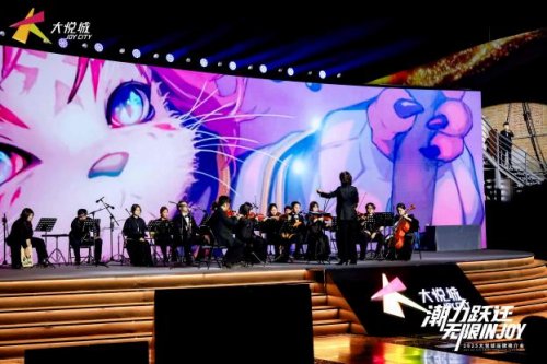 在开幕仪式上,大悦城携手B站百万粉丝的帝玖管弦乐团,共创“青年超感秀”。乐团奏响了《地下城与勇士》主题旋律,其宏大的世界观与贯穿始终的热血精神,不仅是对经典IP的致敬,更是一种朝气勃发的年轻力表达。