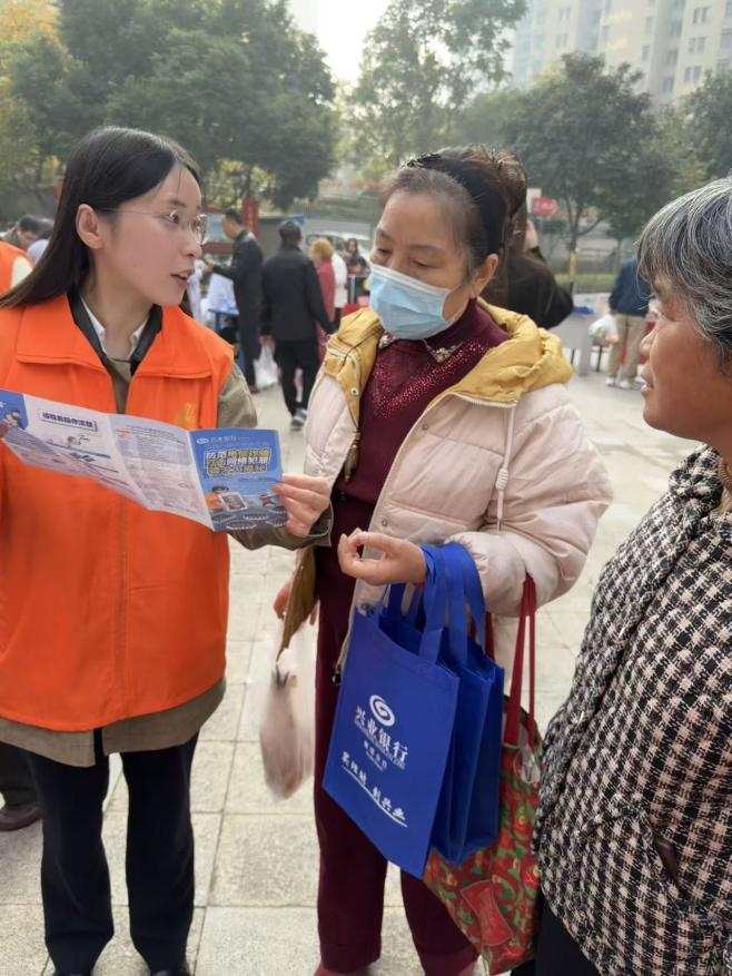 活动现场,兴业银行“兴公益”志愿者服务队搭建起综合服务专区,将适老服务与公益关怀深度融合。在金融安全守护区,志愿者结合“冒充公检法”“养老产品诈骗”等典型案例,用通俗易懂的方言和图文并茂的大字版手册,为老年人讲解反诈技巧,手把手指导辨别虚假宣传,筑牢“养老钱”安全防线;针对数字时代的“银发困境”,志愿者们耐心教授老年人使用智能手机查询社保、线上缴费、视频通话等实用功能,帮助跨越数字鸿沟。健康关爱区里,联合专业医护团队提供免费血压血糖检测、健康咨询服务,细致解答慢性病管理、冬季养生等问题,传递科学健康理念。作为“兴公益”惠民驿站服务的延伸,本次活动特别聚焦独居、高龄等特殊老年群体,志愿者们与老人促膝谈心,了解生活需求与健康状况,同时宣传兴业银行上门金融服务流程,承诺为行动不便老人提供账户查询、业务办理等便民服务,让关爱无需远行。