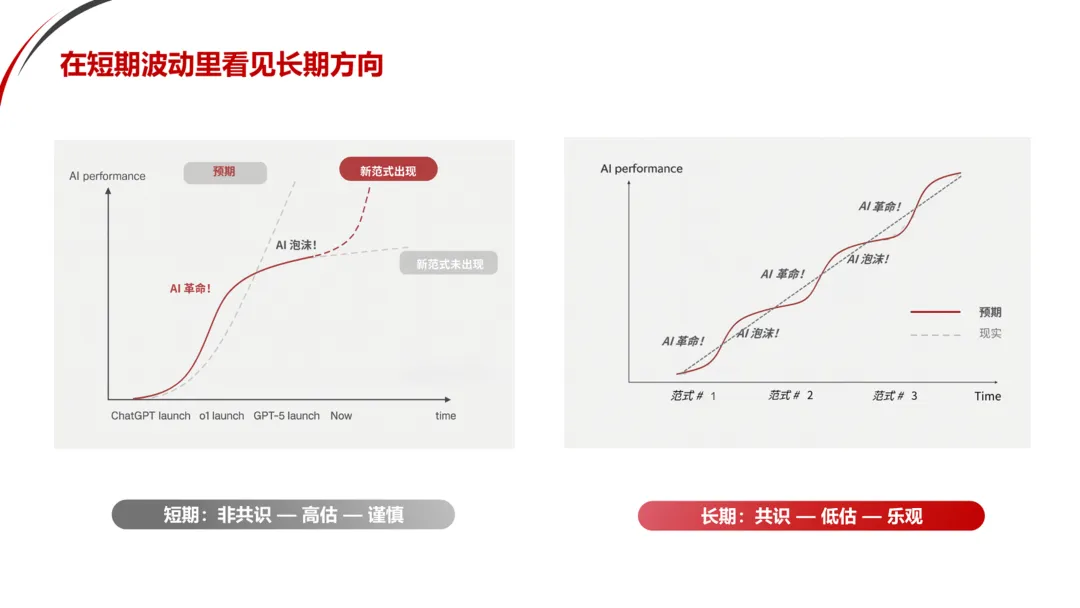 在演讲最后,王力行指出:短期内,行业对于技术路径、应用节奏与商业模式等仍存在非共识,甚至阶段性高估;但从更长周期看,AI的基础价值已形成稳固共识,而当前阶段反而可能“被低估”。真正的机会,将来自那些在大趋势共识下坚持探索开拓非共识路径的参与者。