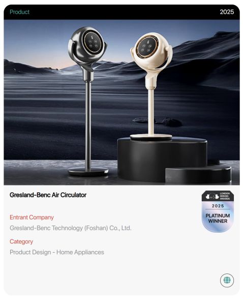 欧洲高端家电品牌-奔驰(Gresland-Benc)电器今日官宣,其公司旗下—奔驰智能循环扇、奔驰变频取暖器,在2025年伦敦设计大奖评选中,赢得重要荣誉。
