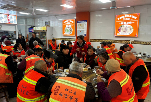 12月1日清晨,黄庄街道联合市益点阳光爱心公益协会开展冬日送温暖活动,邀请辖区环卫工人免费享用热气腾腾的牛肉汤,以此表达对“城市美容师”的敬意与关怀。