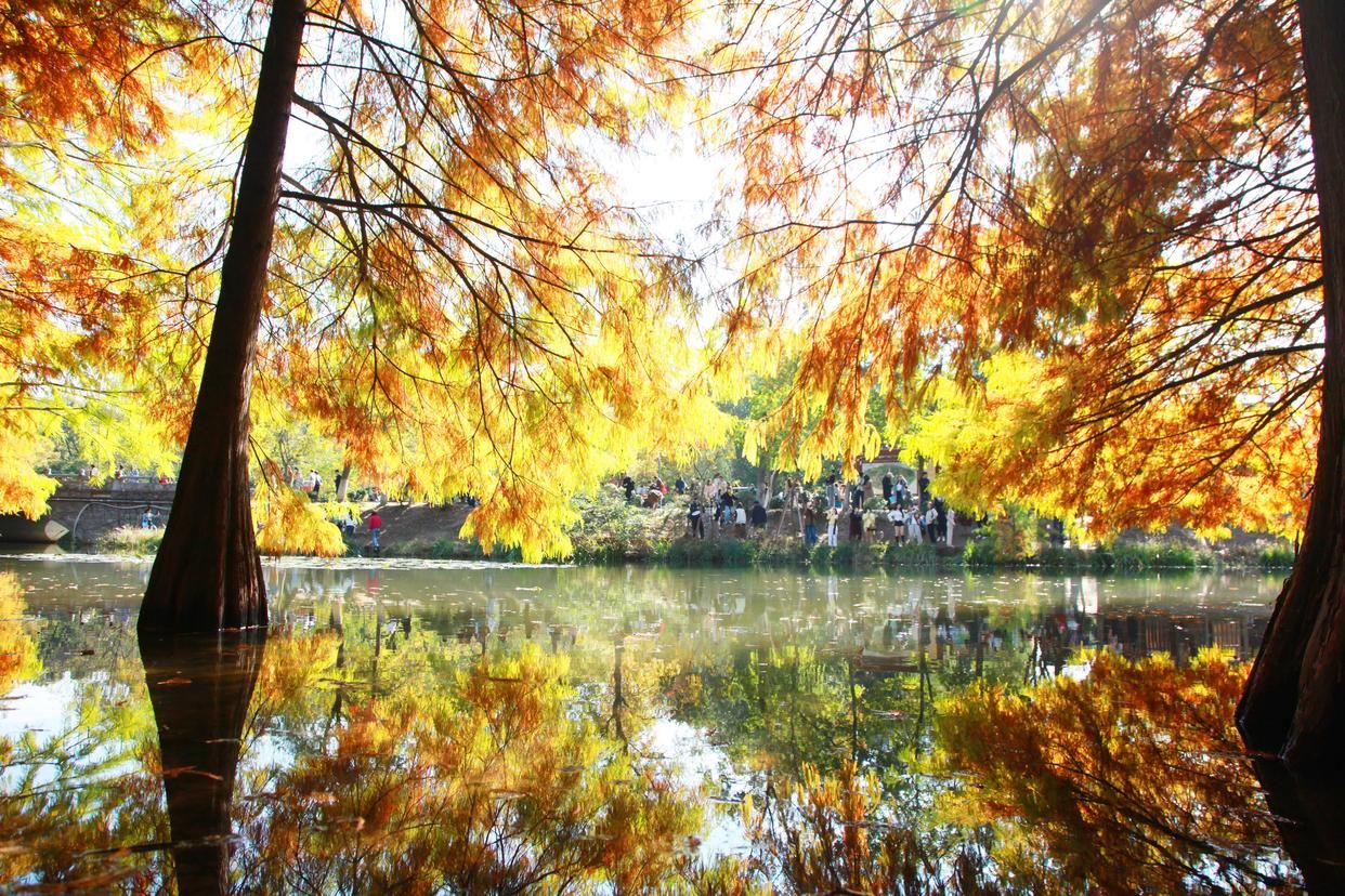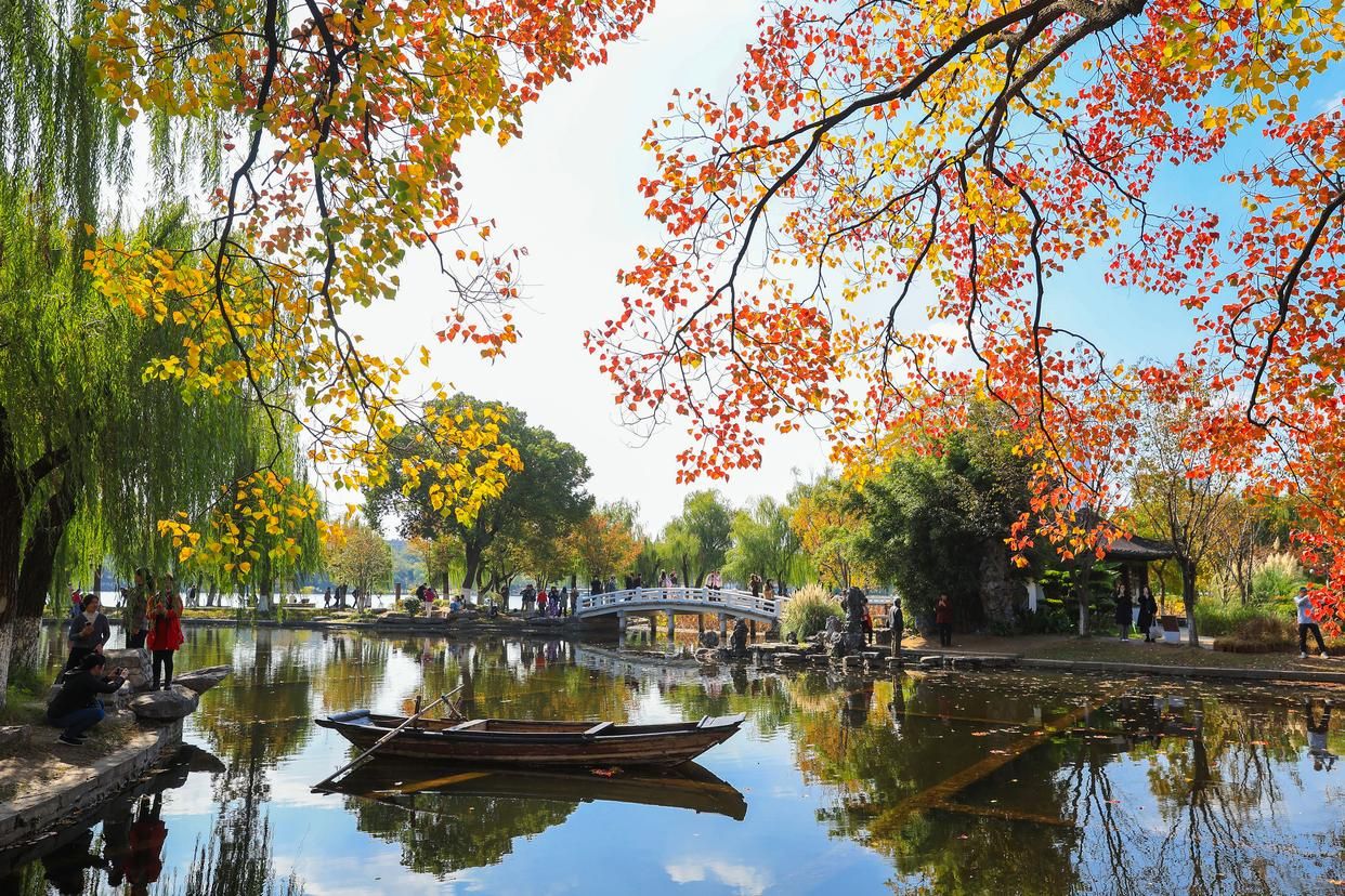 11月12日,游客在南京莫愁湖公园赏景游玩。新华社发(苏阳 摄)