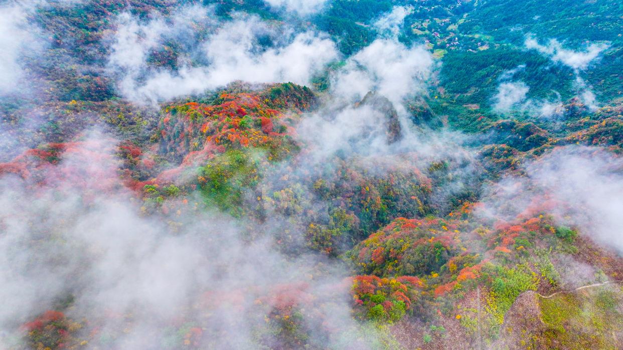 11月12日,四川省达州市宣汉县巴山大峡谷雨后云雾缭绕,美如仙境(无人机照片)。新华社发(张平 摄)