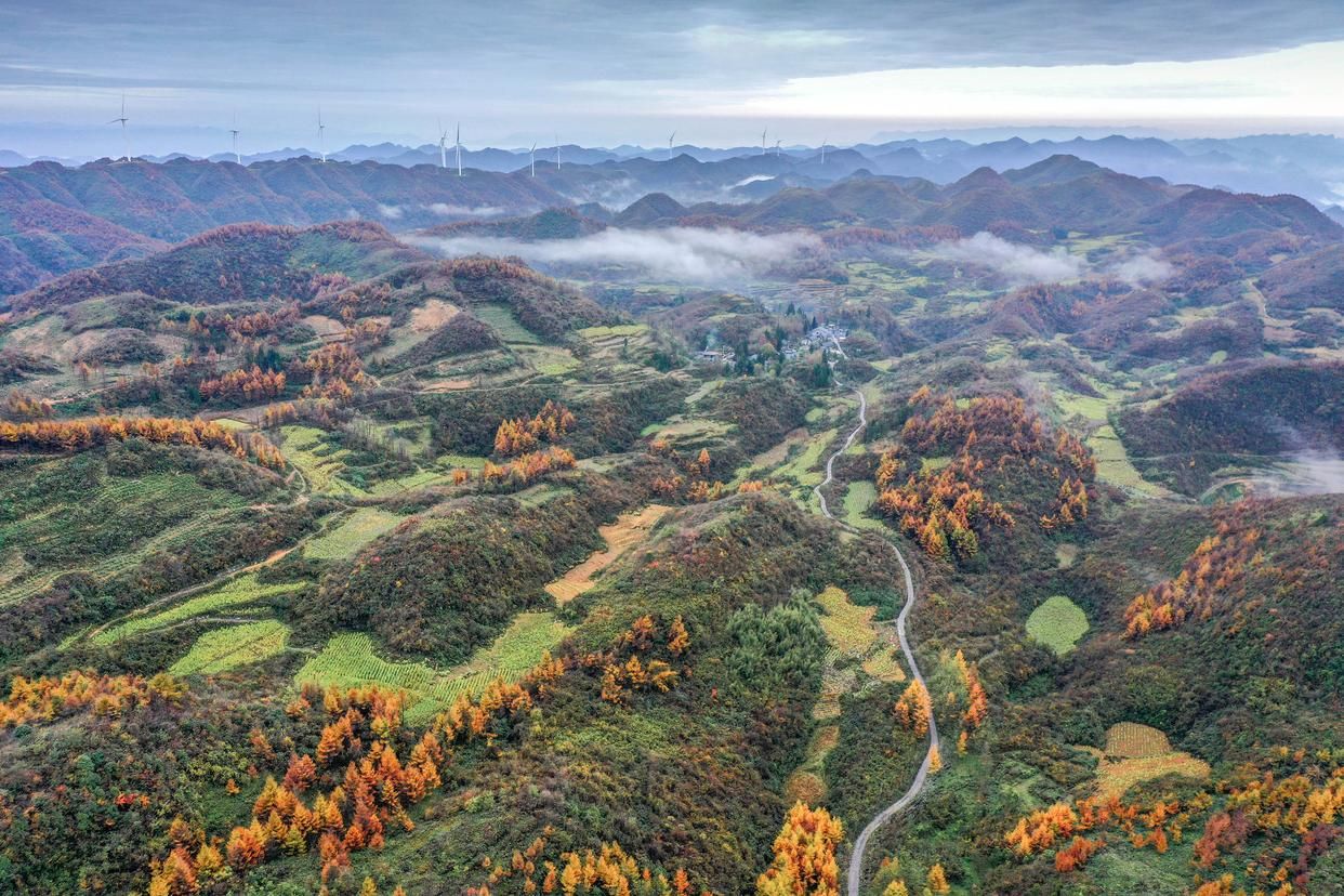 11月12日拍摄的湖南省湘西土家族苗族自治州龙山县大安乡翻身村景色(无人机照片)。新华社发(曾祥辉 摄)