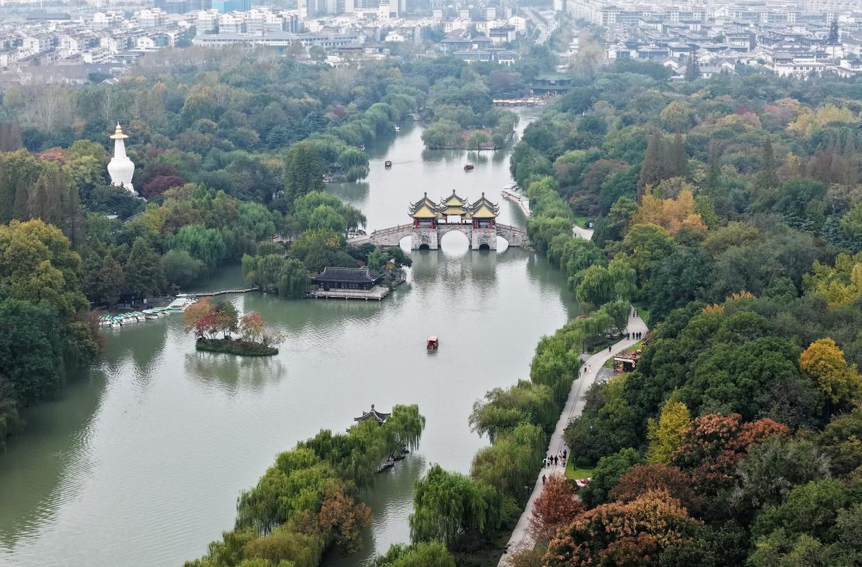11月12日拍摄的江苏扬州瘦西湖风景区初冬景色(无人机照片)。新华社发(孟德龙 摄)