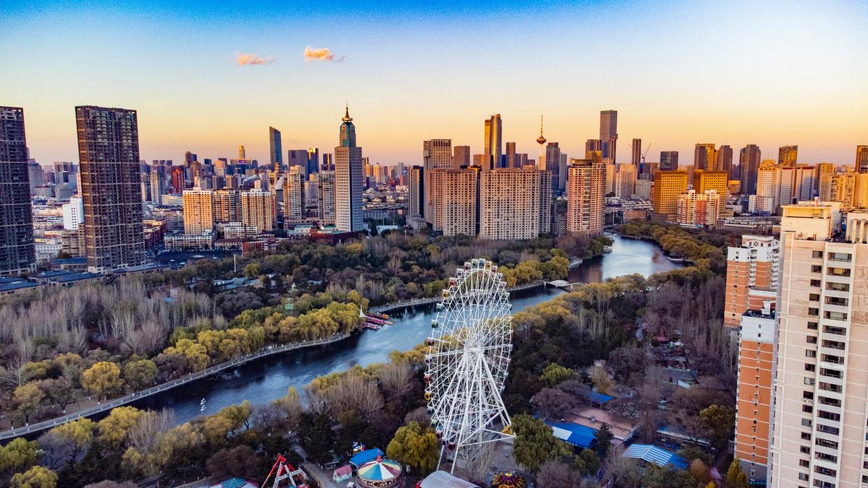 11月9日拍摄的辽宁省沈阳市和平区南湖公园景色(无人机照片)。新华社发(邹新江 摄)
