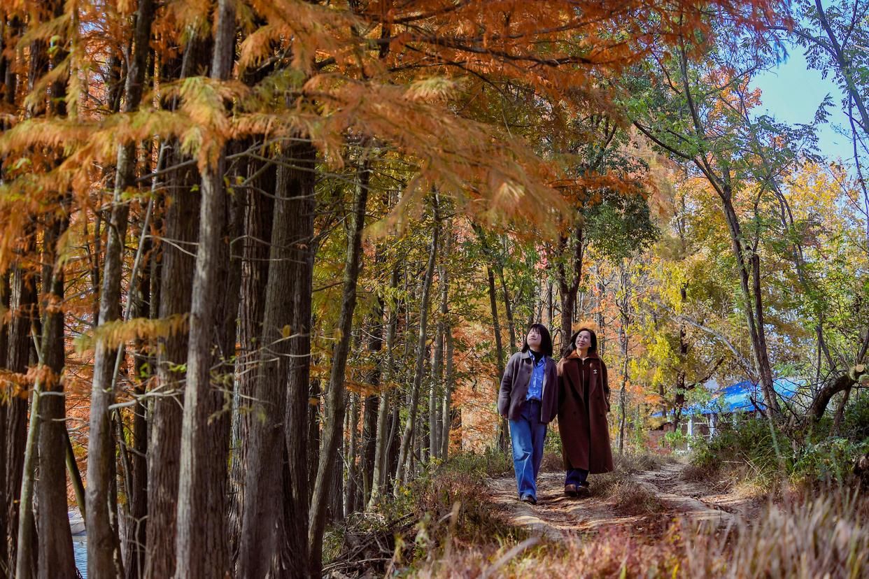 12月1日,游人在浙江省兰溪市永昌街道一处水杉林赏景游玩。新华社发(时宽兵 摄)