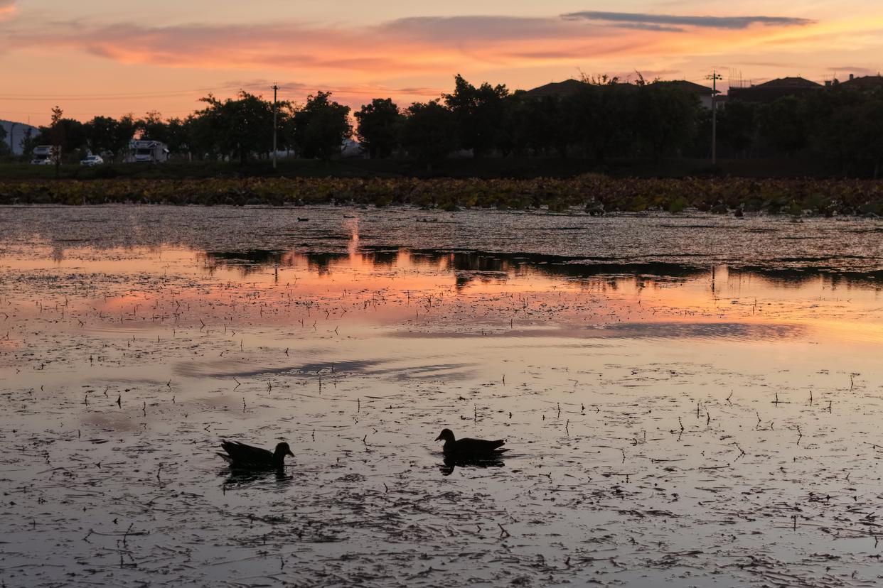 12月1日,候鸟在云南省腾冲市东湖公园栖息(无人机照片)。新华社发(龚祖金 摄)
