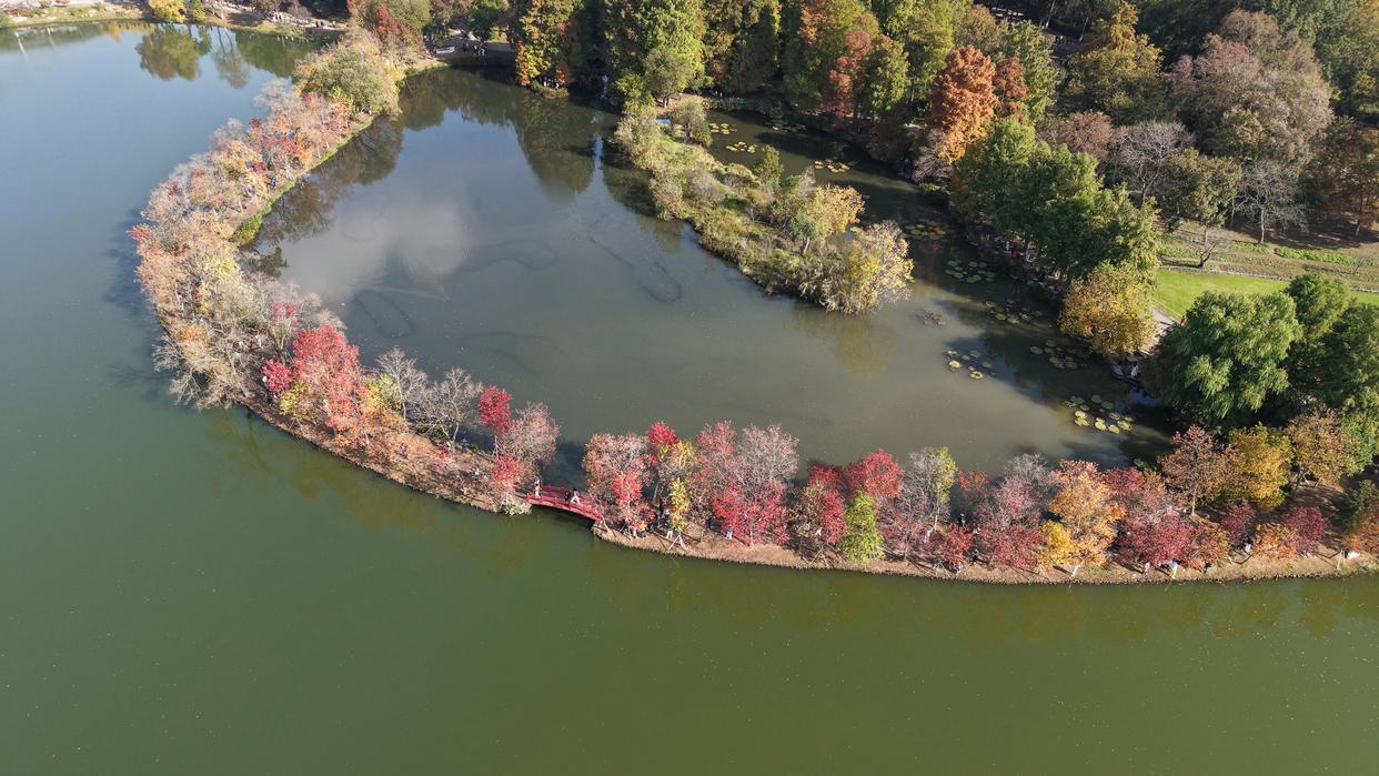 11月12日拍摄的南京中山植物园南园景色(无人机照片)。新华社发(夏纪福 摄)