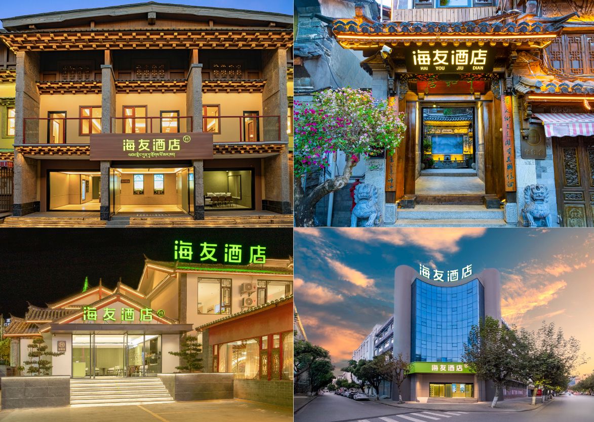 (从左至右依次为:海友香格里拉古城酒店、海友大理古城洋人街酒店、海友丽江古城大水车酒店、海友保山永昌大道酒店)