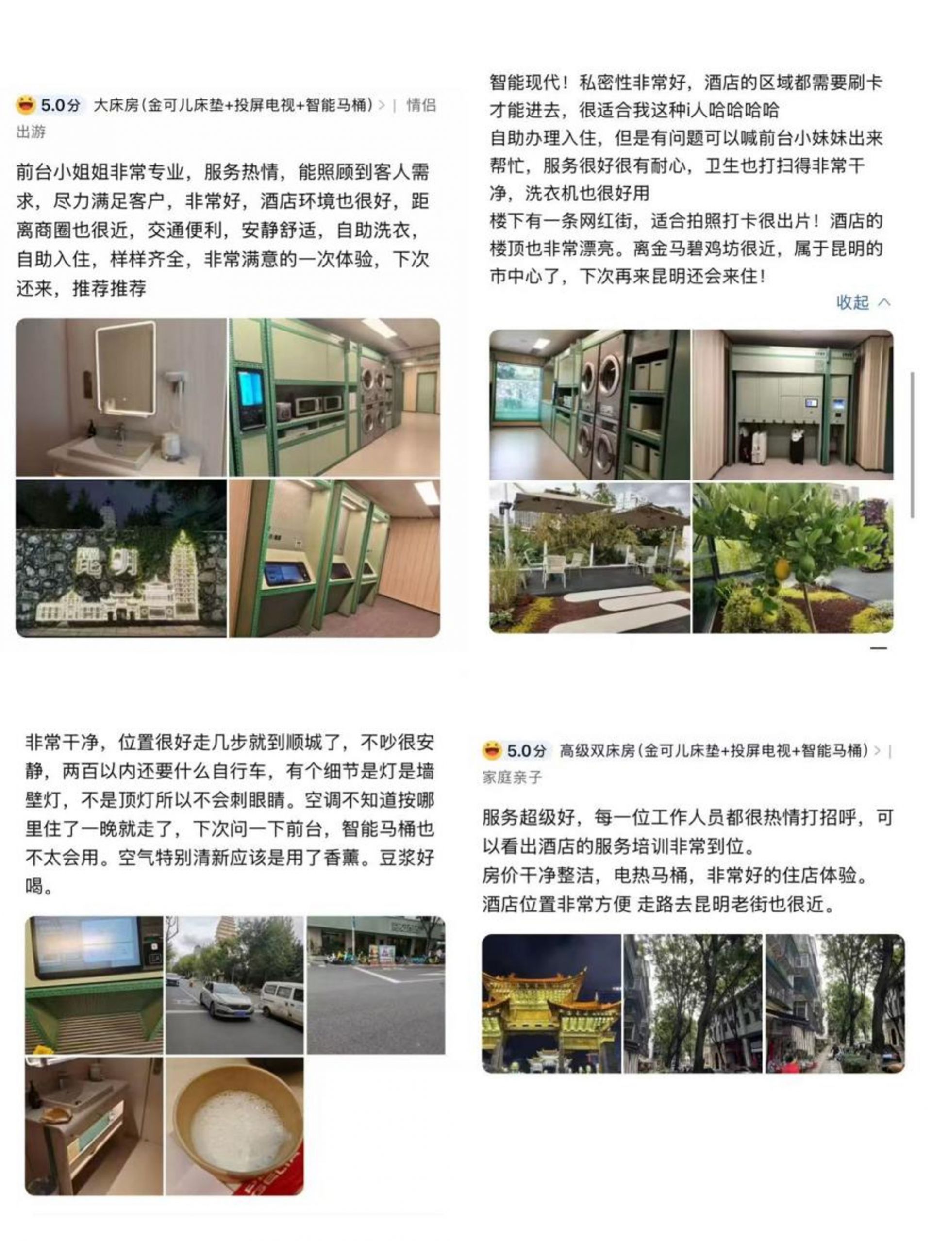 这家门店位于昆明南屏步行街核心旅游区,采用“模组化装修+全自助服务”,在严格控制单房造价与总投资门槛的前提下,实现了快速开业、快速获客、稳定赚钱。不仅生意好,门店在OTA平台也收获了良好的口碑。“位置绝佳”“智能方便”“干净卫生”“性价比高”成为住客评价里的高频词。