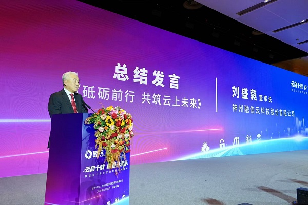 活动尾声,融信云董事长刘盛蕤以《砥砺前行,共筑云上未来》总结发言,向十年来给予支持的客户、股东与政府部门表示真挚感谢。他强调:“融信云,是金融云领域的先行者,也是坚定不移的参与者,更是矢志不渝的推动者。”同时,刘盛蕤宣布了两个好消息;第一,公司已完成股份制改造,并正式申请新三板挂牌!这意味着,融信云将进入“产业+资本”双轮驱动的发展快车道,资本赋能将为未来的业务插上腾飞的翅膀;第二,在未来2-3年,公司将持续投入2亿元人民币,用于核心技术研发、基础设施的信创改造与生态能力打造。