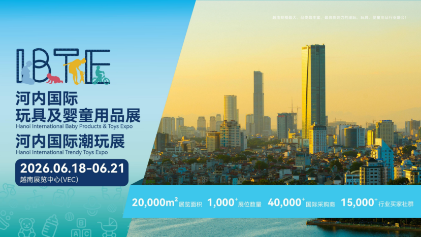 展望2026年,基于IBTE品牌在越南市场的深厚积淀与广泛影响力,主办方将进一步拓展战略布局,将这一成功项目延伸至越南首都河内,在东南亚最大的展览场馆越南展览中心(VEC)隆重举办IBTE河内国际玩具及婴童用品展暨河内国际潮玩展。此举旨在更加精准地对接河内及越南北部地区买家的采购需求,为中国企业提供高效、精准的市场开拓渠道,助力其深度挖掘越南北部核心市场的巨大潜力,实现互利共赢的可持续发展。