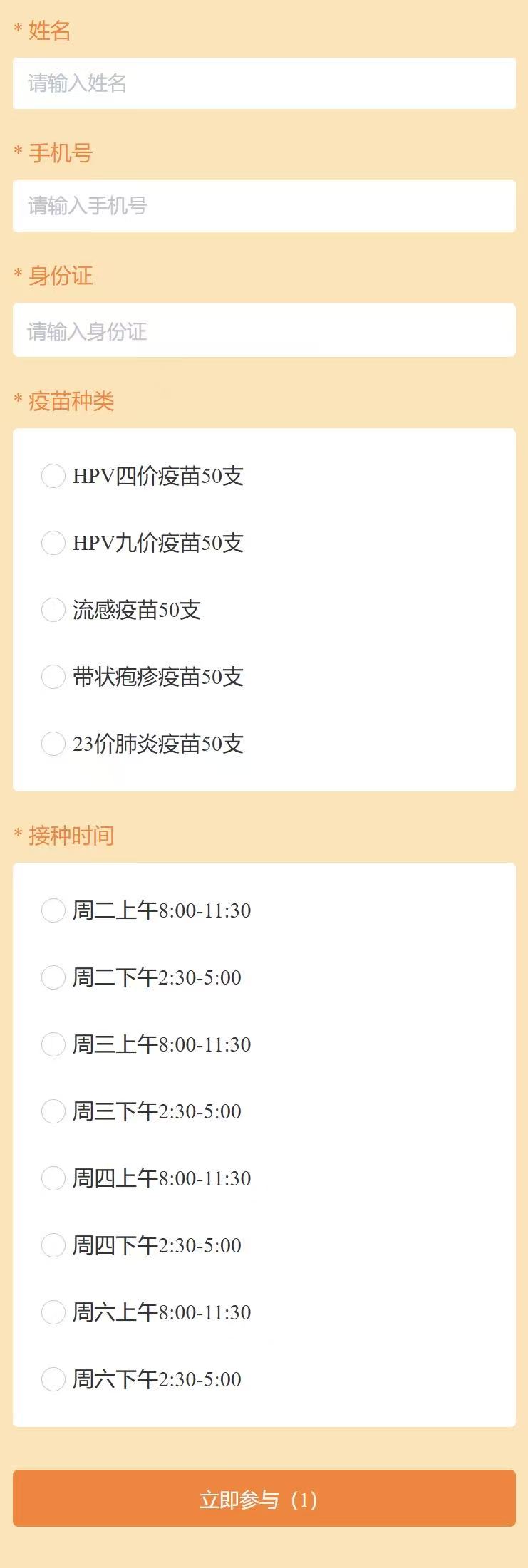 4、上午时段8:00-11:30,下午时段2:30-5:00可进行接种,国家法定节假日不接种疫苗。请按需预约,原则上如提交信息成功即预约成功,不支持变更预约时间;