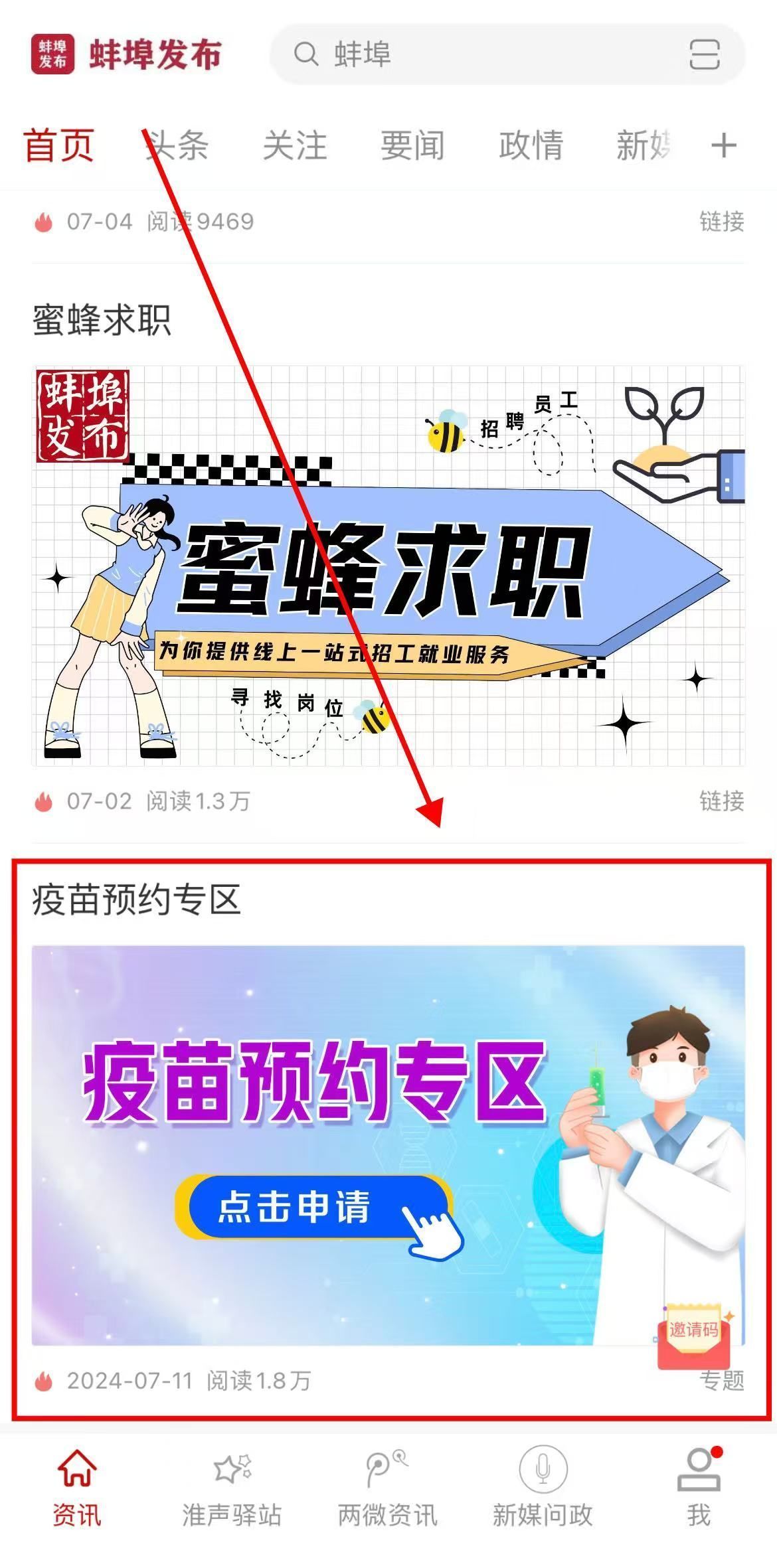 进入首页“预约”频道,在12月7日晚九点会出现疫苗预约的链接,点击进入预约登记。
