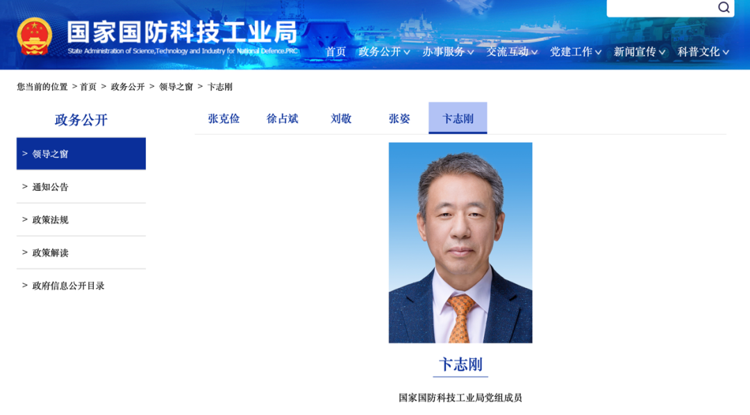 日前,据国家国防科技工业局官网“领导之窗”栏目更新信息显示,卞志刚已任国家国防科技工业局党组成员。