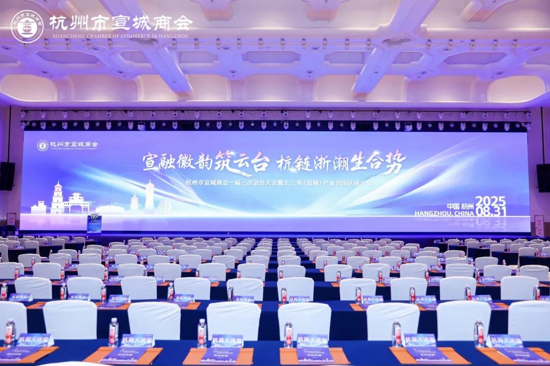 近日,杭州市宣城商会一届三次会员大会暨长三角(宣城)产业合作区推介会在杭州成功举行。本次大会以"凝聚乡情,共谋发展"为主题,全面总结商会过去一年工作成果,展望未来发展蓝图,重点推介家乡宣城市在长三角一体化战略下的产业合作新机遇。宣城市人民政府副市长嵇文,市政协副主席程观远,宣城市委统战部副部长、市工商联党组书记田家凯,杭州市政协副主席、工商联主席冯仁强,杭州市工商联党组成员、副主席周华,长三角(宣城)产业合作区党工委书记、管委会主任王昌盛,管委会领导李业军,杭州市宣城商会会长郭建庆,杭州市宣城商会智库团主席沈文华,杭州市宣城商会顾问团主席杨贵平,杭州市宣城商会秘书长张艺琳,杭州市宣城商会监事长王刚志,杭州市宣城商会副会长兼新生代联谊会会长罗林,广德市实验小学教育集团总校长陈富恒,长三角宣城合作区管委会招商办主任刘聪、中闰汉宇文化集团副总裁叶莘等出席。