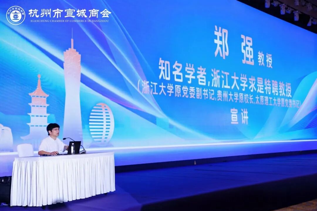 大会期间,长三角(宣城)产业合作区管委会、杭州市宣城商会联合组织了产业合作推荐活动。杭州市工商联、杭州市宣城商会联合组织了“杭商大讲堂”,特邀浙江大学求是特聘教授郑强带来《关于AI、新质生产力以及转型发展的理念与思考》专题演讲。杭州市、宣城市两地领导、长三角(宣城)产业合作区领导,杭州市宣城商会会员、商会顾问智库专家、乡贤代表、友好商协会及企业家代表近500人出席活动。