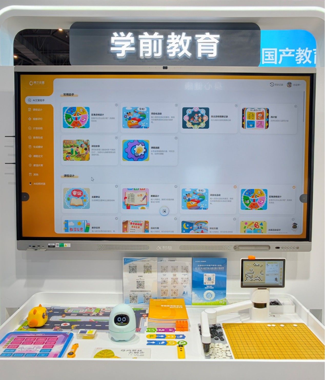 阿尔法蛋绘本阅读机器人通过智能语音交互与图像识别技术,为孩子提供沉浸式的阅读陪伴体验,激发幼儿阅读兴趣,培养幼儿自主阅读能力;淘小鹰编程机器人则通过实物编程指令,引导孩子在实际操作中完成编程任务,培养孩子的计算思维与解决问题的能力;淘小智思维互动机以游戏化方式开展数学思维训练,提升儿童的认知与逻辑思维能力;阿尔法蛋围棋机器人将传统文化与人工智能相结合,助力围棋启蒙与策略思维培养;AI体能工具包则通过智能交互手套实时采集运动数据,助力教师科学指导儿童开展体育锻炼,促进身心健康发展;幼师AI文案助手结合教师工作场景,创设多个专区,N个智能体,辅助教师生成专业的工作文案,提升工作效能。