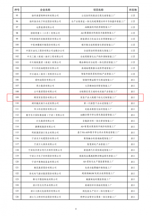 近日,工业和信息化部发布《2025年卓越超级智能工厂项目公示名单》,顾家家居凭借“家居产品大规模个性化定制智能工厂”入选其中。