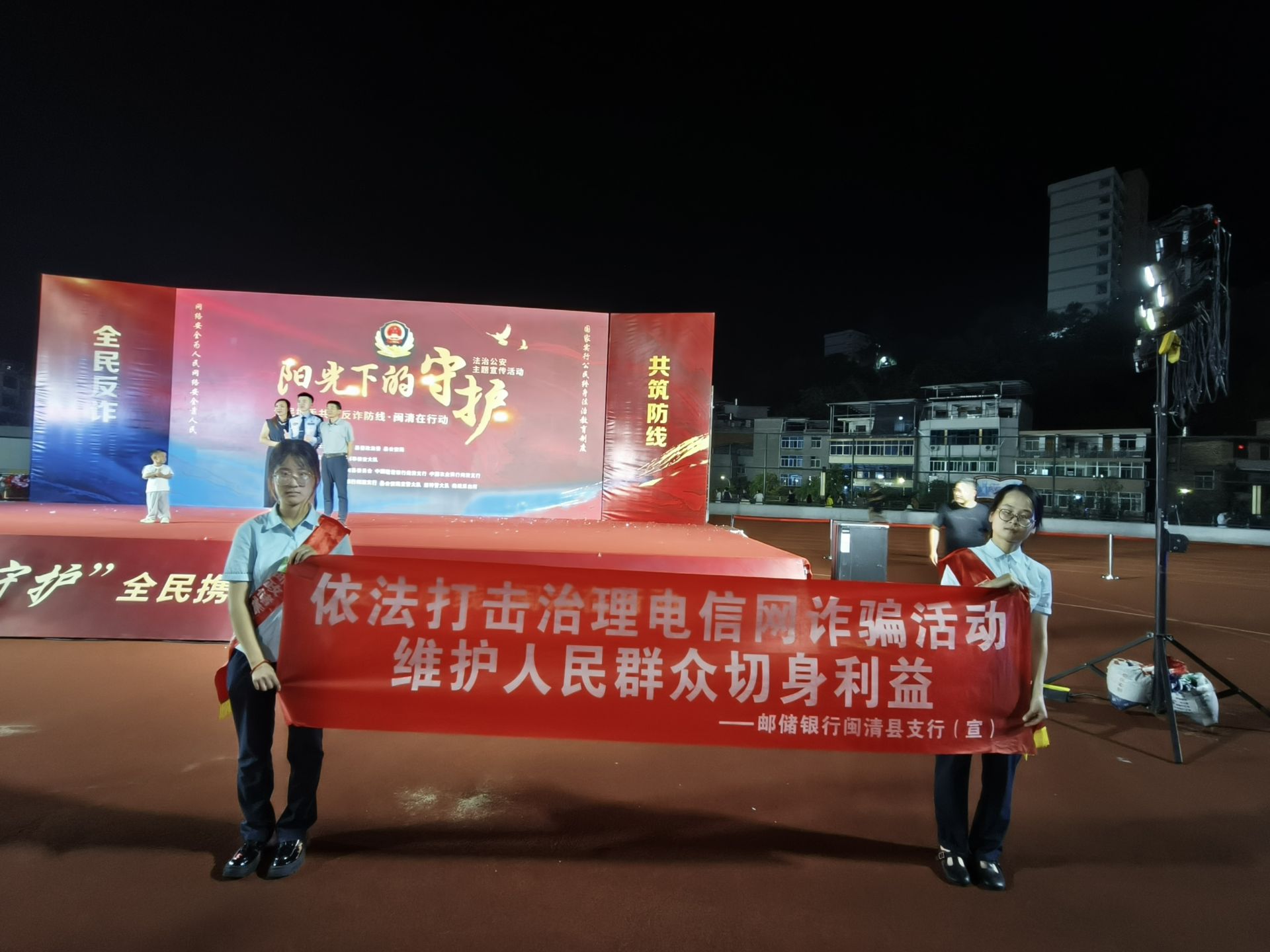 邮储银行闽清县支行参与 “阳光下的守护” 法治宣传 获 “反诈先进单位” 称号