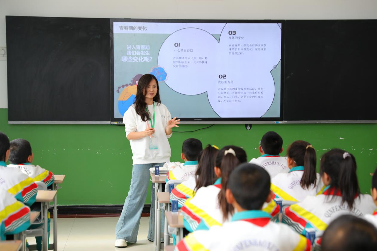 谷雨科学传播官周周老师在给孩子们上皮肤健康科普课
