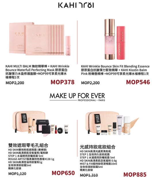 此外, “玫珂菲” “伊丽莎白雅顿”及新进驻 “KAHI”等深受各位女士青睐的人气美妆品牌,推出化妆品、护肤品及香水套装惊喜折扣,多款明星套装以超值优惠限时发售,助您以心仪价格臻享护肤体验,勾勒精致妆容。