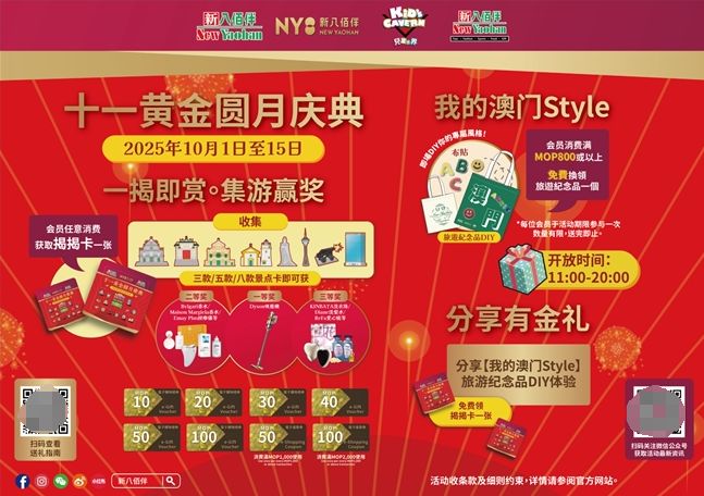 恰逢国庆与中秋双节相连,正值出游与馈赠佳礼的重要时节。澳门新八佰伴积极响应市场趋势,将于10月1日至10月15日举办“十一黄金圆月庆典”大型主题活动。活动融合时尚消费与传统文化元素,覆盖美妆护肤、时尚服饰、家居生活、母婴玩具、环球美食等多重品类,联合逾百个品牌推出独家优惠,并荟萃传统与创新口味的月饼及多种礼品精选。现场更推出创新奖励玩法,包括赠送购物礼券及限量DIY旅游纪念品等,全面提升顾客购物体验。此次活动有望吸引大批游客消费,为澳门消费市场注入新动力。