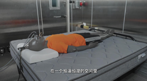 在散热性对比实验中,顾家家居委托第三方实验室进行实验,在恒温恒湿的空间里放置身上带有传感器的暖体假人模拟睡眠状态,观察90分钟之内假人身体各部位的皮肤温度变化。最终结果显示,顾家床垫的表面温度始终保持在33.8℃,具有更强的散热性