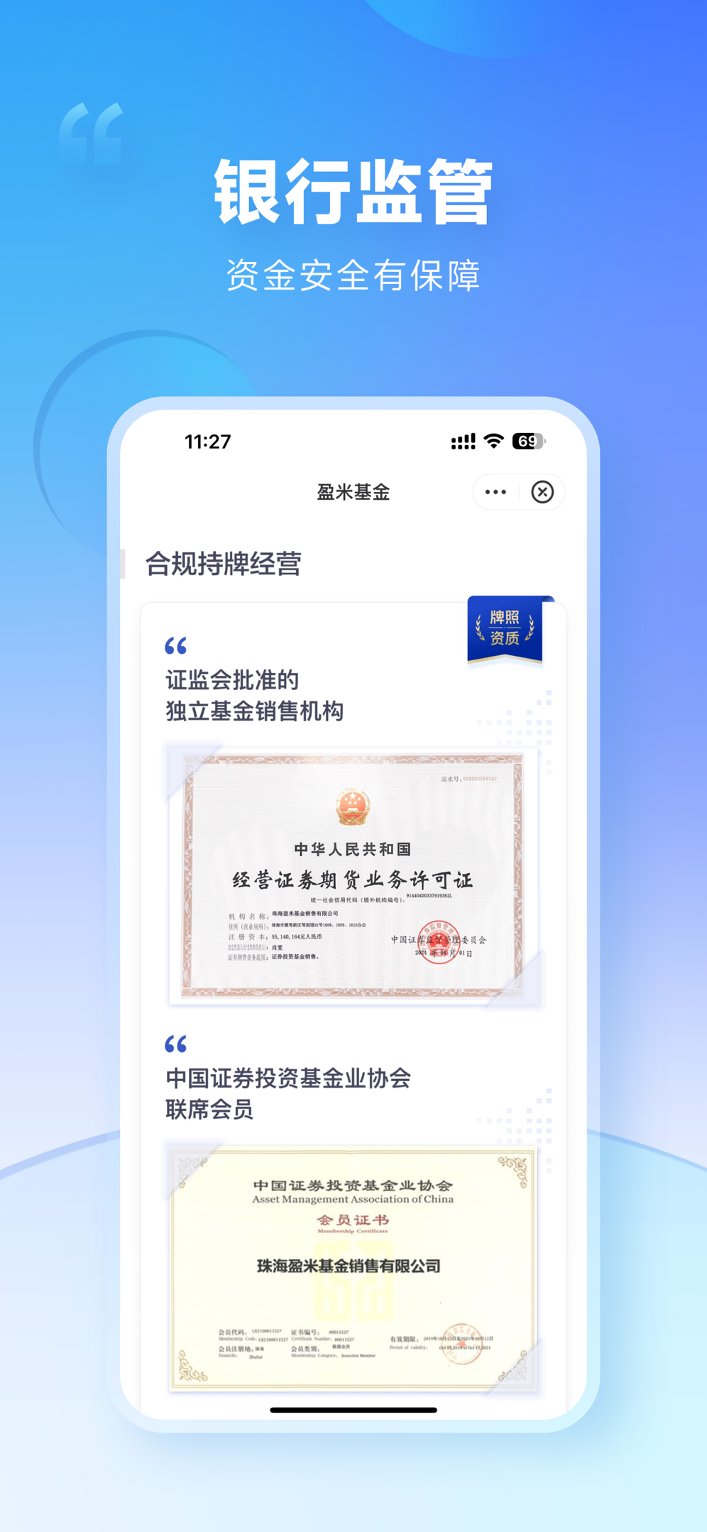 1、公司背景正规可靠:盈米启明星APP是由盈米基金开发。盈米基金是正规持牌机构,获中国证监会颁发的《经营证券期货业务许可证》,是中国证监会核准首批开展基金投顾业务的机构之一(注:三方独立销售机构中仅蚂蚁、腾讯、盈米基金取得投顾业务试点资格)。