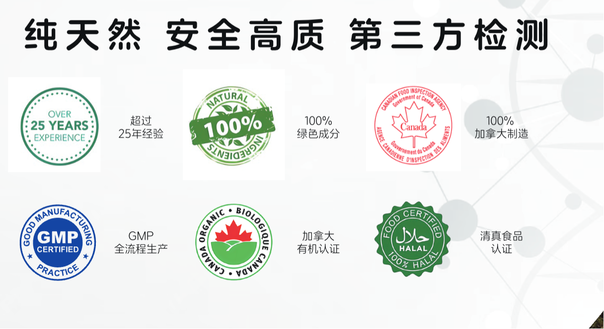 在代加工领域,“资质” 是品牌选择合作伙伴的核心考量,而 Capwork 的认证体系堪称 “行业范本”。作为加拿大少数同时具备多重国际认证的代加工企业,Capwork 的生产设施不仅通过 GMP 认证,更完全符合 NSF/ANSI 455 系列全球性 GMP 标准 —— 这一由国际权威机构制定的标准,涵盖原料溯源、生产流程、质量检测等全环节,是全球营养保健代工领域的 “品质通行证”。