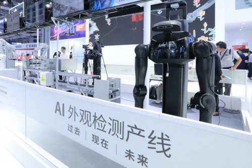 本次展会上,三菱电机人工智能外观检测柔性产线应用了鹿明具身智能机器人Lumos MOS,这也是其首次在模拟真实产线环境下展示其高效作业能力。